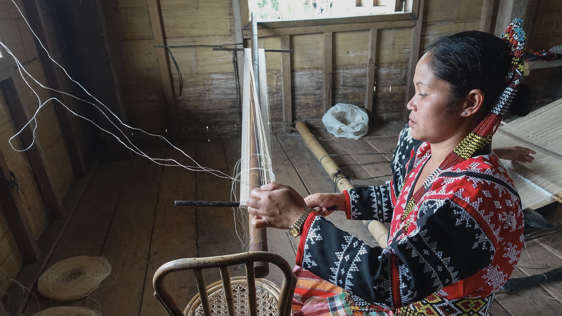The Diamond Dusk Libby redefines the straw bag with its sleek design and intricate craftsmanship. Made from natural plant fibers handwoven on a traditional backstrap loom by tribeswomen in the Southern Philippines, its stunning diamond pattern is created through an ingenious knotting and dyeing technique. Once the knots are untied, the fibers reveal their striking geometric beauty.